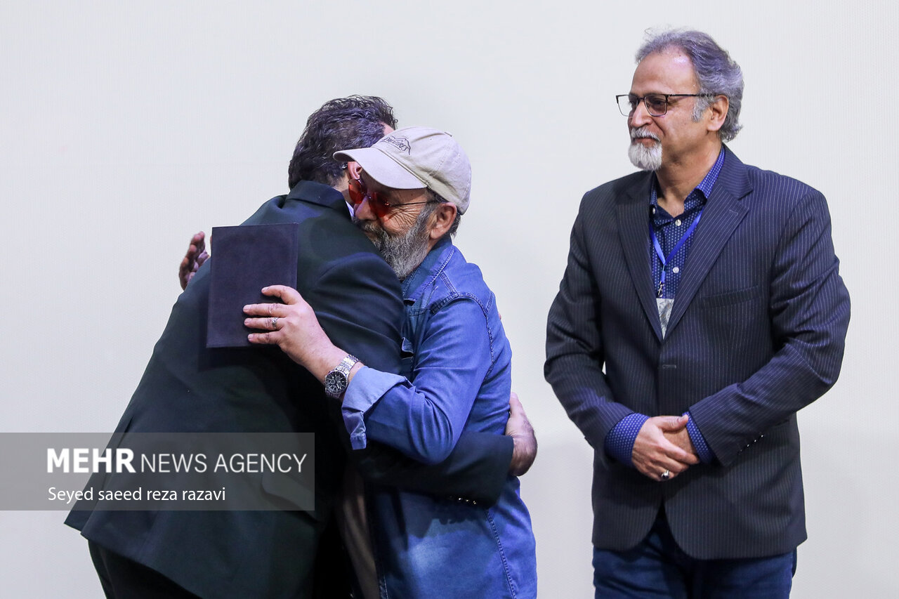 سپس با دعوت مجری، محمودرضا رحیمی دبیر جشن به همراه بهرام ابراهیمی، روی صحنه حاضر شدند.