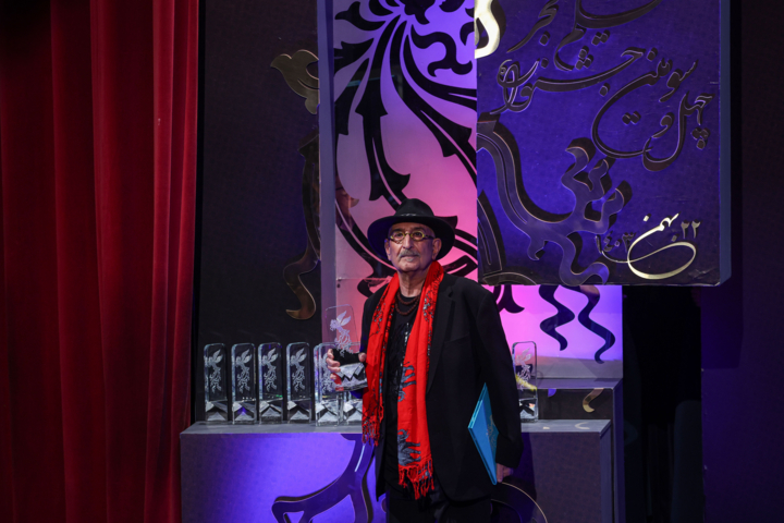 داوران برای اهدای سیمرغ به این بازیگر پیشکسوت از روی پلههای سن پایین آمدند و او را تا روی سن همراهی کردند. شهاب حسینی ایستاده این هنرمند را تشویق کرد.