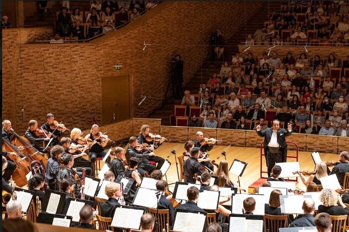 کنسرت مشترک ارکستر مجلسی نوین سازمان فیلارمونیک سنتپیترزبورگ روسیه و ارکستر سمفونیک تهران به رهبری یاروسلاو زابویارکین و دیمیتری گاننکو تکنواز ویولنسل و مدیر این پروژه ششم اسفندماه با اجرای قطعههای «کامارینسکایا» و «والس فانتزی» اثر میخائیل گلینکا (۱۸۵۷-۱۸۰۴) آهنگساز روس و بنیانگذار مکتب موسیقی مدرن روسیه، «نوکتورن» و «واریاسیونهای روکوکو» برای ویولنسل و ارکستر از آثار پیترایلیچ چایکوفسکی (۱۸۹۳-۱۸۴۰) از آهنگسازان سرشناس روس، «سمفونی شماره ۴۰» اثر ولفگانگ آمادئوس موتزارت (۱۷۹۱-۱۷۵۶) آهنگساز اتریشی و موسیقیدان دوران کلاسیک و «مرثیه» برای ویولنسل اثر بهزاد عبدی آهنگساز ایرانی در تالار وحدت به روی صحنه رفت.
