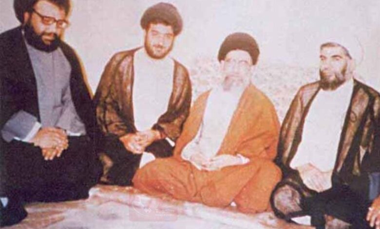 سید حسن نصرالله همراه سید عباس موسوی در محضر مقام معظم رهبری