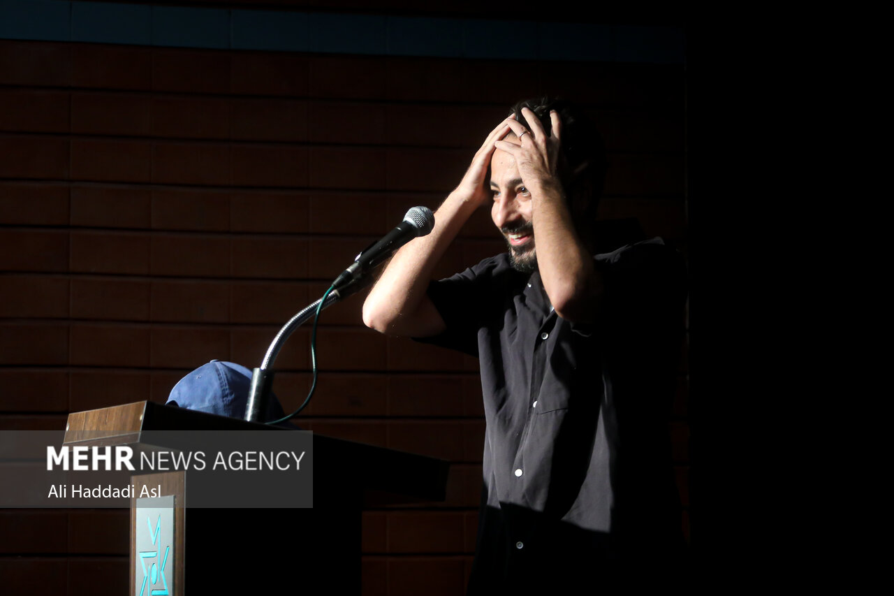 نوید محمدزاده دیگر سخنران این مراسم بود که گفت: وقتی قرار باشد درباره استاد صحبت کنم، خجالت میکشم. خیلی دوستتان دارم. امیدوارم قسمت باشد تا روی صحنه با شما نفس بکشم و قسمت باشد روی صحنه تئاتر از شما یاد بگیرم.